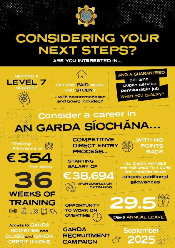The most recent Garda Trainee recruitment competition was run from 18 September - 9 October 2025. You can find out more about that competition here.