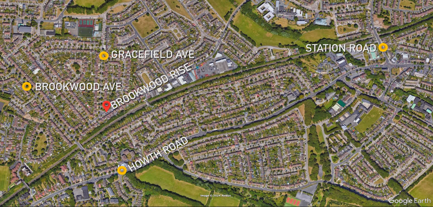 A few hours later, at around 12.40pm, the Audi is seen driving on Harmonstown Road, Raheny and then continued onto Brookwood Rise. It attempted to park near a local convenience shop but after a failed attempt, it drove off turned towards Rosemount Avenue, and returned minutes later, when it parked on Brookwood Rise, outside the convenience shop.