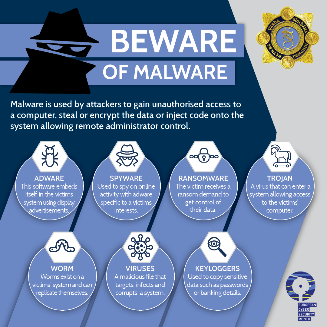 Cybercriminals are constantly on the lookout for new ways to extract money from victims. The Garda National Cyber Crime Bureau and the National Cyber Security Centre have noticed an increase in ransomware attacks against small and medium businesses. Many of these attacks are launched through infected email attachments or phishing email which link to fraudulent websites that are used to download malicious software (malware) onto the targeted computer.